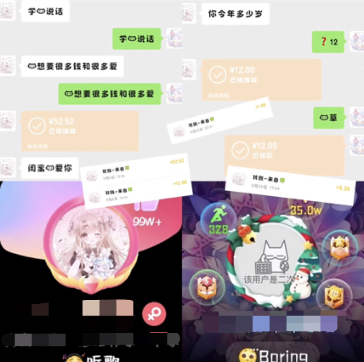 「正常聊了才一周,他跟我说想看看我,要我拍胸部给他看,我没答应,他就直接把我删了。」 淋姐之所以这么谨慎,是因为当时小天才圈刚出了一个大事,「一个初中男,让女的拍隐私部位给他,女的年龄小,啥也不懂就照做了,结果男的转头就把照片发到了一个百人大群里。」