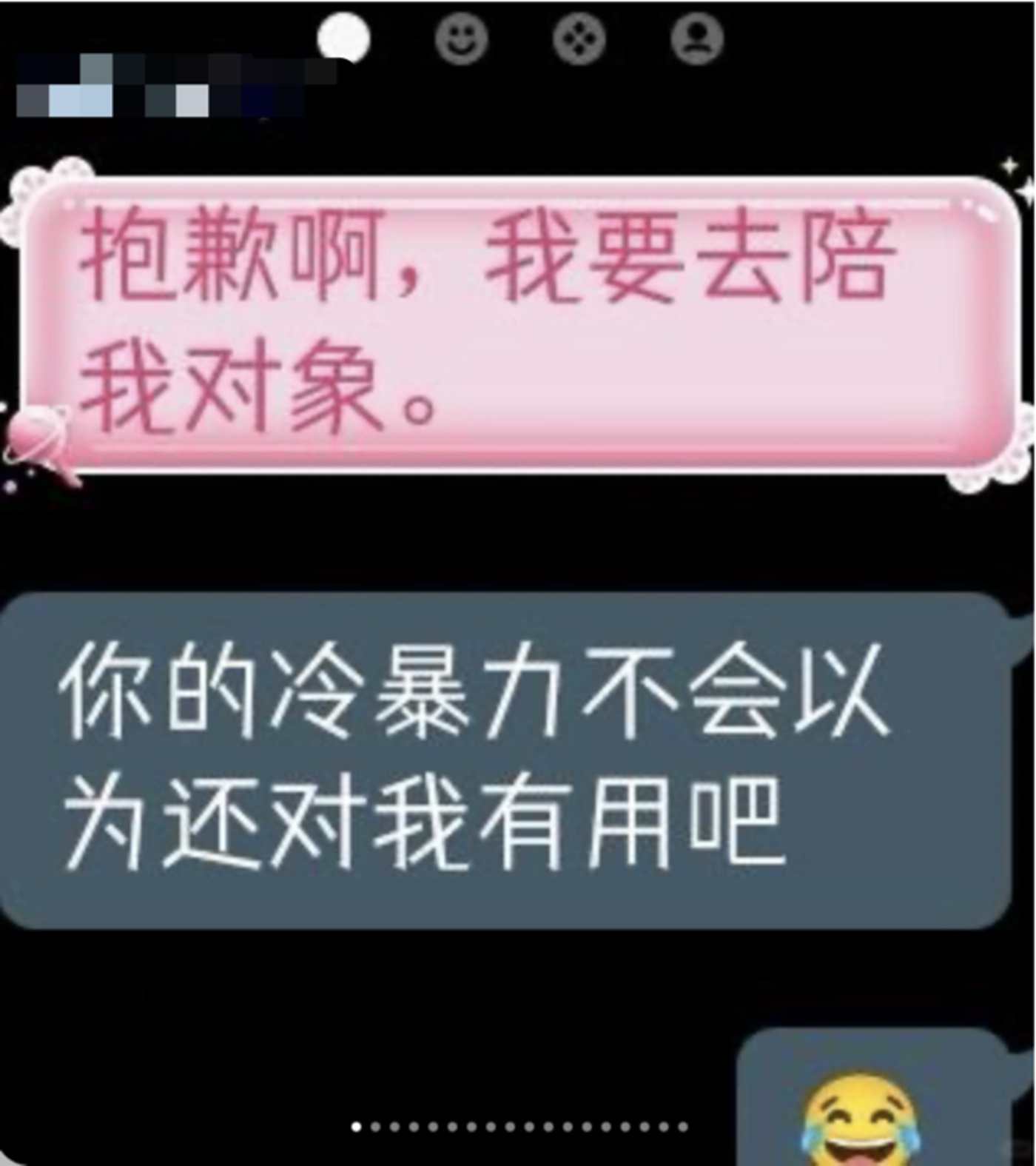 淋姐可是个大直女,知道以后起了一身鸡皮疙瘩,「赶紧提分手了,后面听说她又装起了 『男同』,用自己男闺蜜的照片当头像,跟男的谈恋爱。」