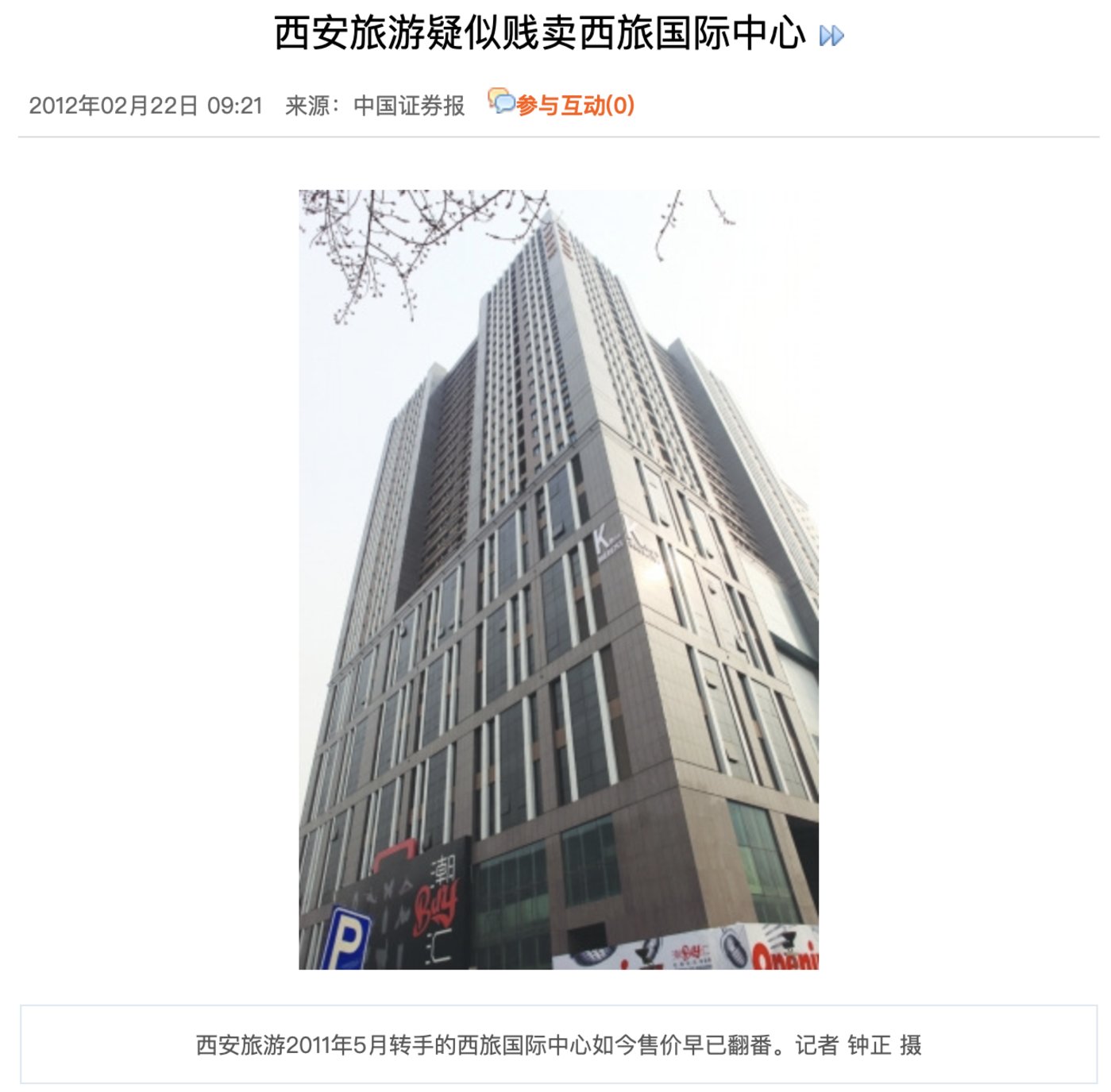 只不过,享受如此盛景的并非西安旅游:在 「黄金街区」 打造了 「黄金商业项目」 之后,西安旅游于 2011 年 5 月竟以 3.05 亿元整体转手了西旅国际商业项目,项目接手方仅用了 9 个月将如此抢手产品零售而出揽金 6 亿,当年引发外界广泛质疑 「黄金项目」 遭贱卖。