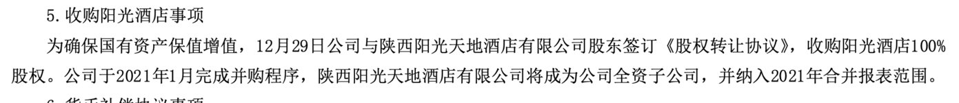 西安旅游称,「由于收购阳光天地酒店股权交易金额未达到董事会审议和披露标准,公司未予披露。」