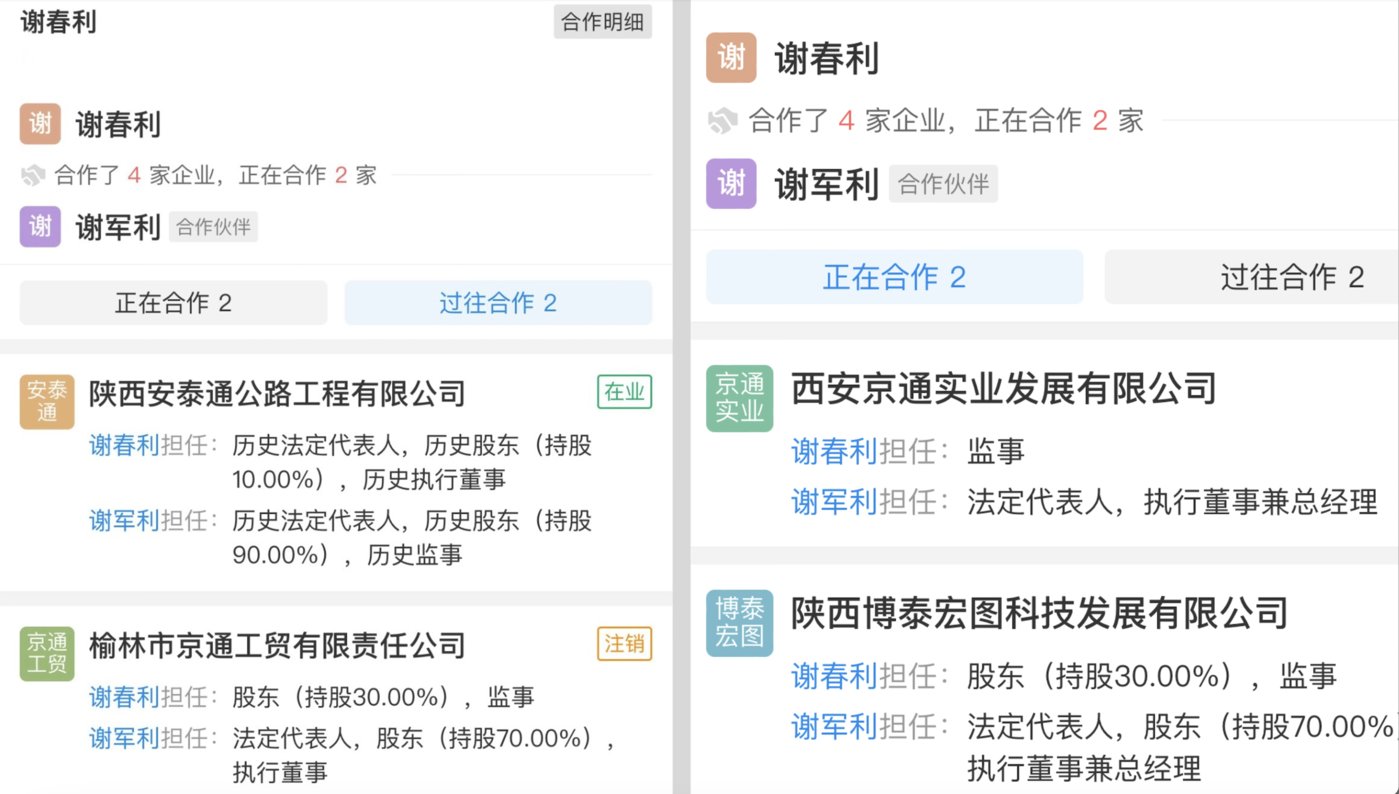 工商信息显示,「陕西阳光天地酒店有限公司」 起初股东仅有一人,2020 年 11 月 11 日,新增持股比例 99.9% 的新股东——上海岱祁企业管理中心 (有限合伙),后者成立于 2020 年 10 月 21 日,股东之一 「谢春利」 与陕西阳光天地原股东 「谢军利」 先后在多家企业共同担任股东。