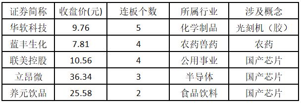 (注:连板个数越多的个股,说明该股被资金重点追捧,可能预示相关概念或行业机会。)