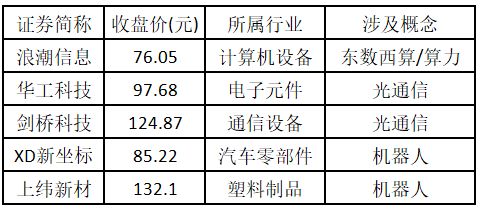 从涨势强度来看,涨停板个股中,股价创出历史新高个股共有 5 只,包括浪潮信息、华工科技、剑桥科技、XD 新坐标、上纬新材。
