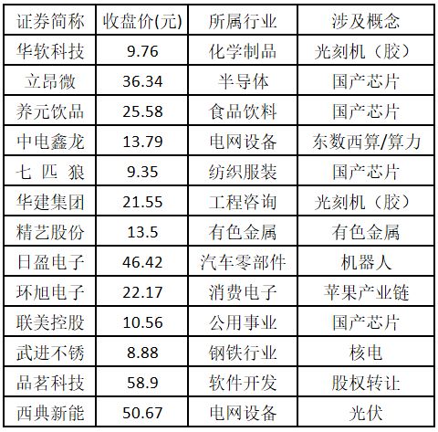 二、涨停个股榜单