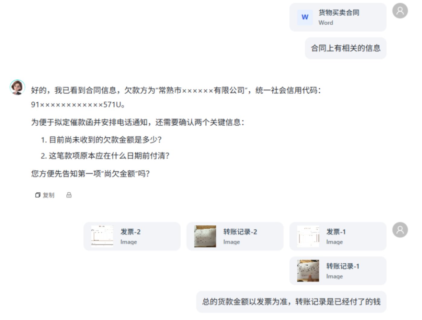 第三,专业知识沉淀。我们这几年一直在做合同和法律服务,积累了大量的合同数据和知识库,对劳动用工、欠款追讨这些高频场景,我们都有专项梳理和持续更新,能保证答案更专业、更可靠。