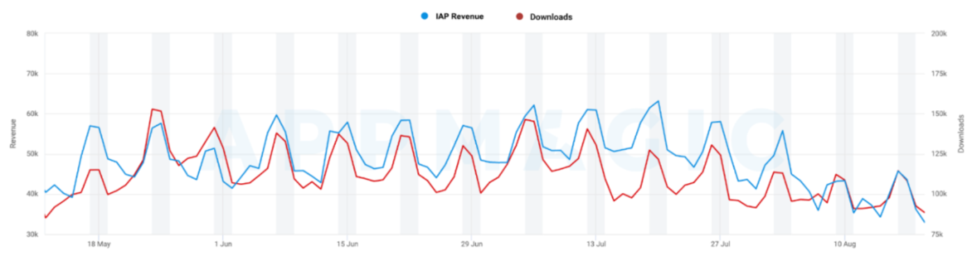 游戏的下载量和收入在近期都有所下滑