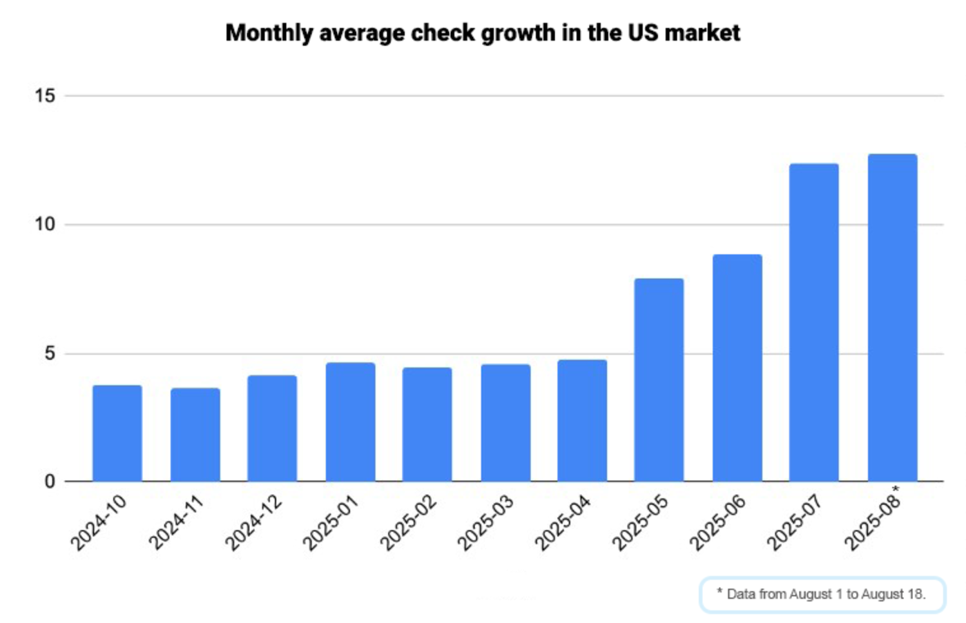 这些调整的效果,从美国区玩家每次消费的均价变化可见一斑:在四月份这个数字约为 5 美元,到七月份已超过 13 美元,短短数月时间内实现翻倍。