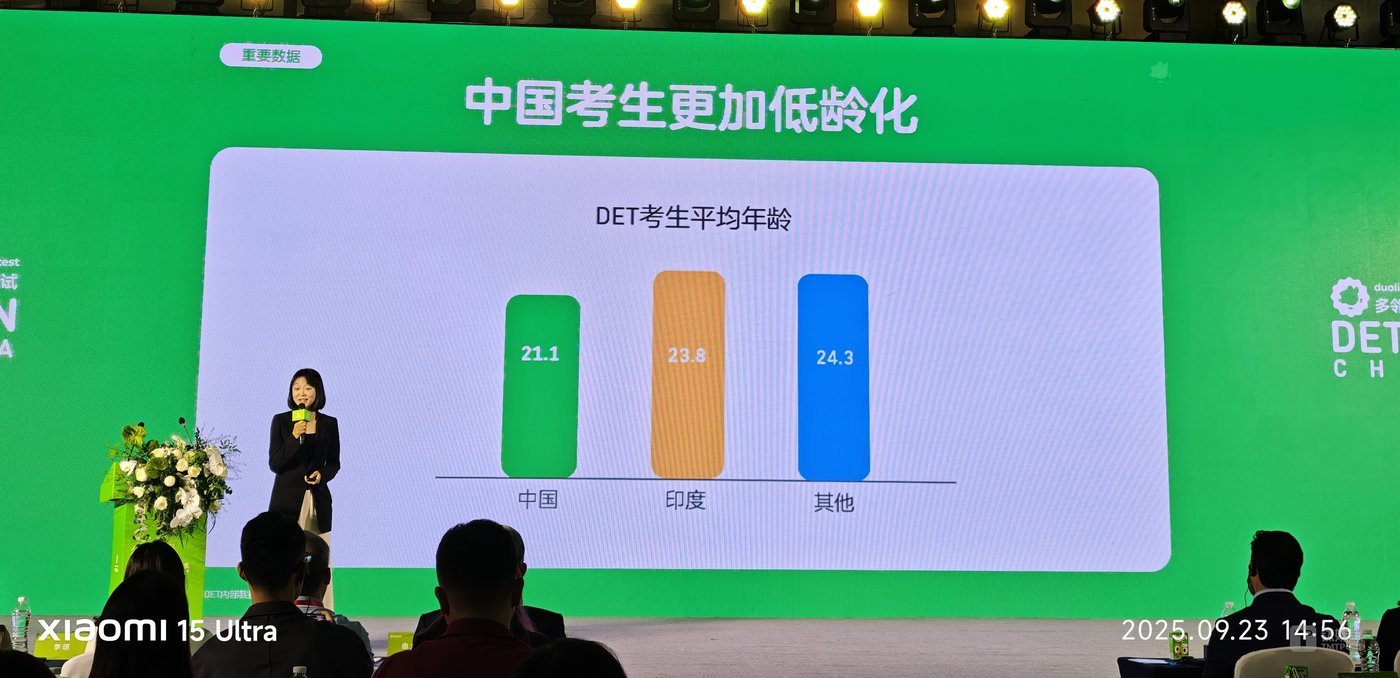 多邻国英语测试中国市场业务负责人王琛透露,中国不仅是多邻国 App 全球增长最快的市场,亦是多邻国英语测试 (DET) 全球最大的考生来源地之一。截至目前,DET 已覆盖中国 1300 多个市县的数十万考生。但同时,中国考生内卷加剧,更加低龄化,DET 考生平均年龄低到 21.1 岁。
