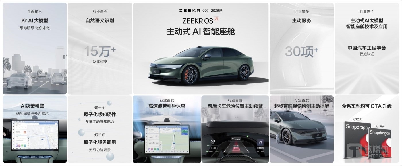 据悉,2025 款车型将智能座舱系统升级为 「AI OS」,引入了 Kr 大模型,让车载智能助手 「Eva」 蜕变成 「AI Eva」。而极氪自研的 Kr AI 大模型,也获得了中国汽车工程学会的 「基于大模型的智能座舱主动式服务关键技术及应用」 的权威认证。