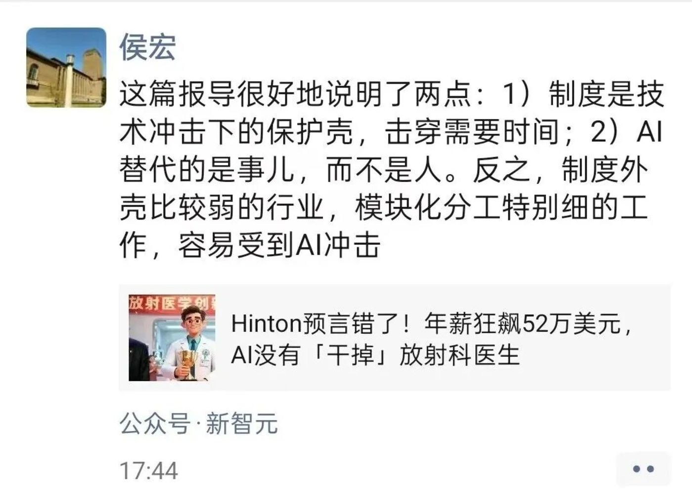 很有意思的点是,我写这篇文章的时候看到侯老师转发了下面的文章:
