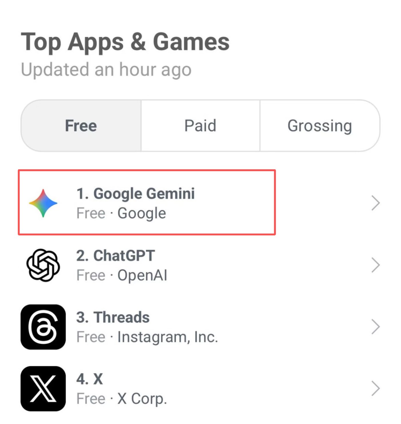 疯狂的流行带来了另一个好处,就是直接带动了 Gemini App 的用户增长。在短时间内,Nano Banana 为 Gemini App 带来了超过 1000 万新用户。而在前不久,Nano Banana 更是帮助谷歌 Gemini 超越了霸榜苹果应用榜很久的 ChatGPT。