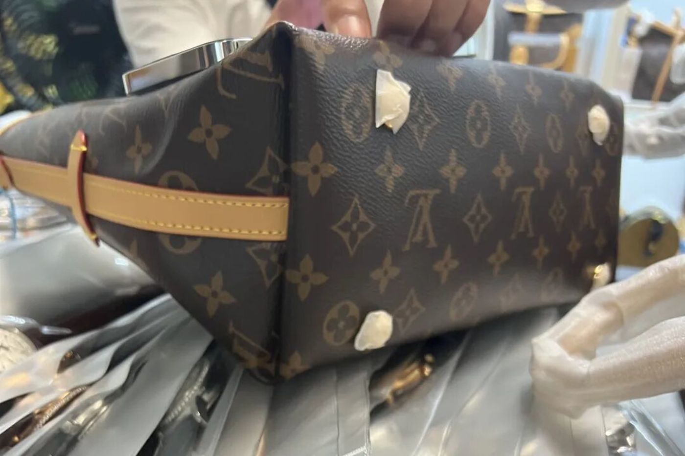 走进店铺,迎面而来的是满墙的 「奢侈品」,各种 「大牌」 包包和饰品在货架上摆放着,包括但不限于 LV、Chanel 等。如小贩所言,屋内确实有几个外国人,正围在茶桌处喝茶。六十余平米的屋子里,已经来了好几拨人参观,场景类似于电影里拍摄的地下钱庄。