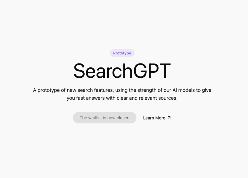 OpenAI 已经关闭了其搜索原型产品 SearchGPT 的测试候补名单,并向未入选的用户发送了通知邮件。
