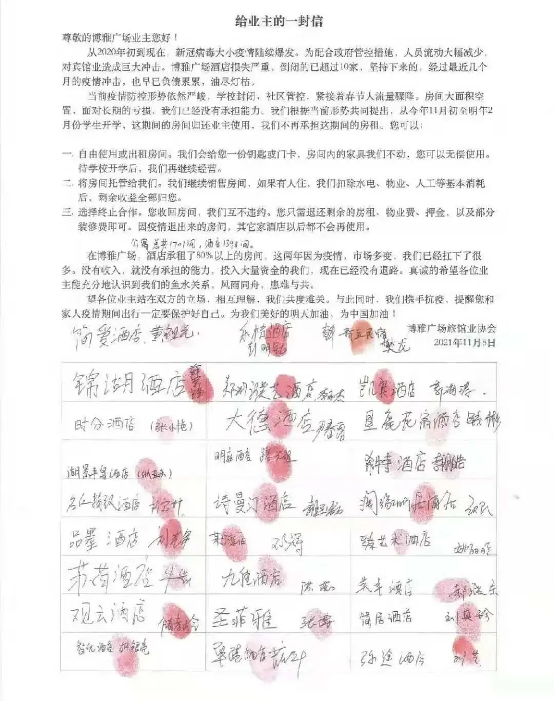 2021 年,河南郑州数十家公寓旅馆老板组团向公寓房东施压,退租、退房、毁约。