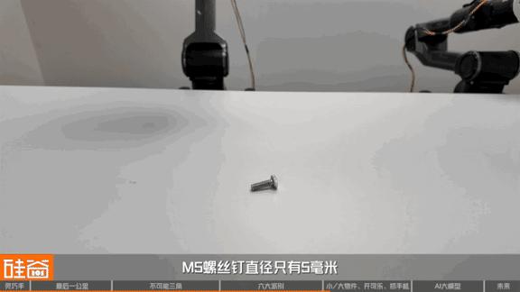 第二,它得有“ 绣花” 般的精细控制。我们说的是毫米级甚至更精细的操作—— 想象一下用机器人手穿针引线,或者像我们一会儿要看到的那样,精准抓取只有 5 毫米的 M5 螺丝钉。