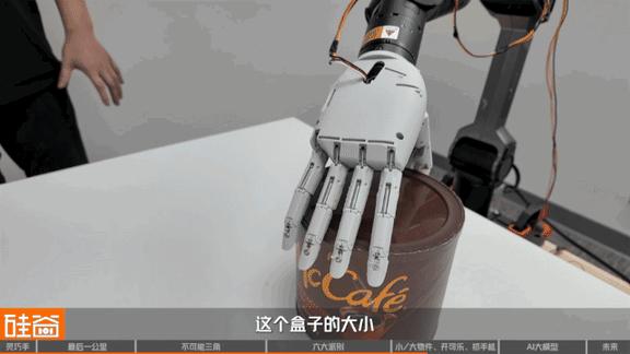 因为这个盒子几乎和机器人的手一样大,因此必须非常精准地去抓住它。基本上这种情况下,你只能用指尖来施力,也就是靠机器手最后一节关节来提供力量。所以对于机械手来说,这样的抓取就变得相当棘手。这个盒子的大小,已经是人手大小能够抓的最接近的尺寸了。手的大小对于人类来说是限制,对于机器人灵巧手来说也是。但是你可以看到我们的灵巧手,对于处理这种接近它手大小极限的物体的时候也是没有问题的。