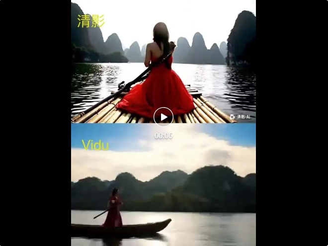 看看清影 (6s) 和 Vidu(4s) 的生成结果表现。