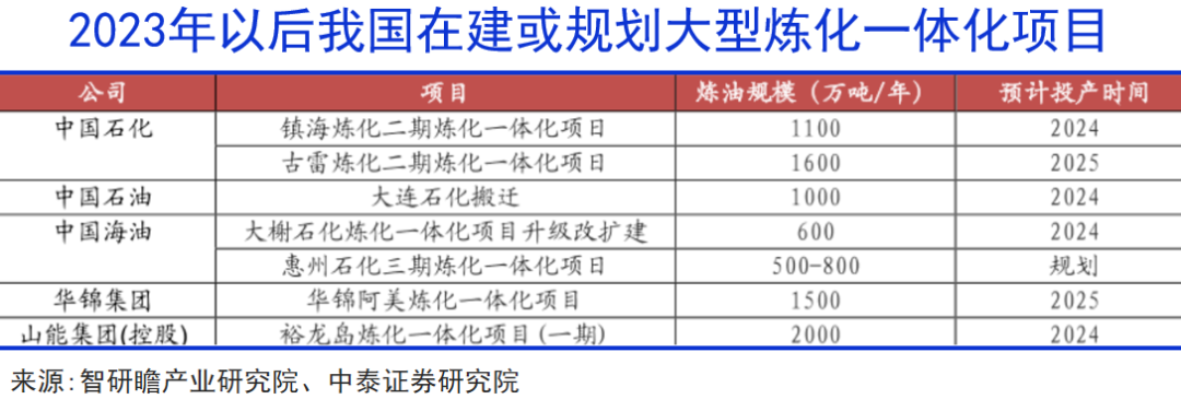 我国 2023 年以后规划的大型炼化项目中,超过 1000 万吨/年规模的仅有五座,其中和沙特阿美合作的就占据两席,国家层面对于中东资本的重视程度可想而知。