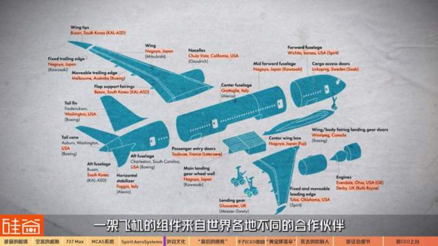 回到波音的外包策略上来,波音如今至少有 600 多家直接供应商,一架飞机的组件来自世界各地不同的合作伙伴。