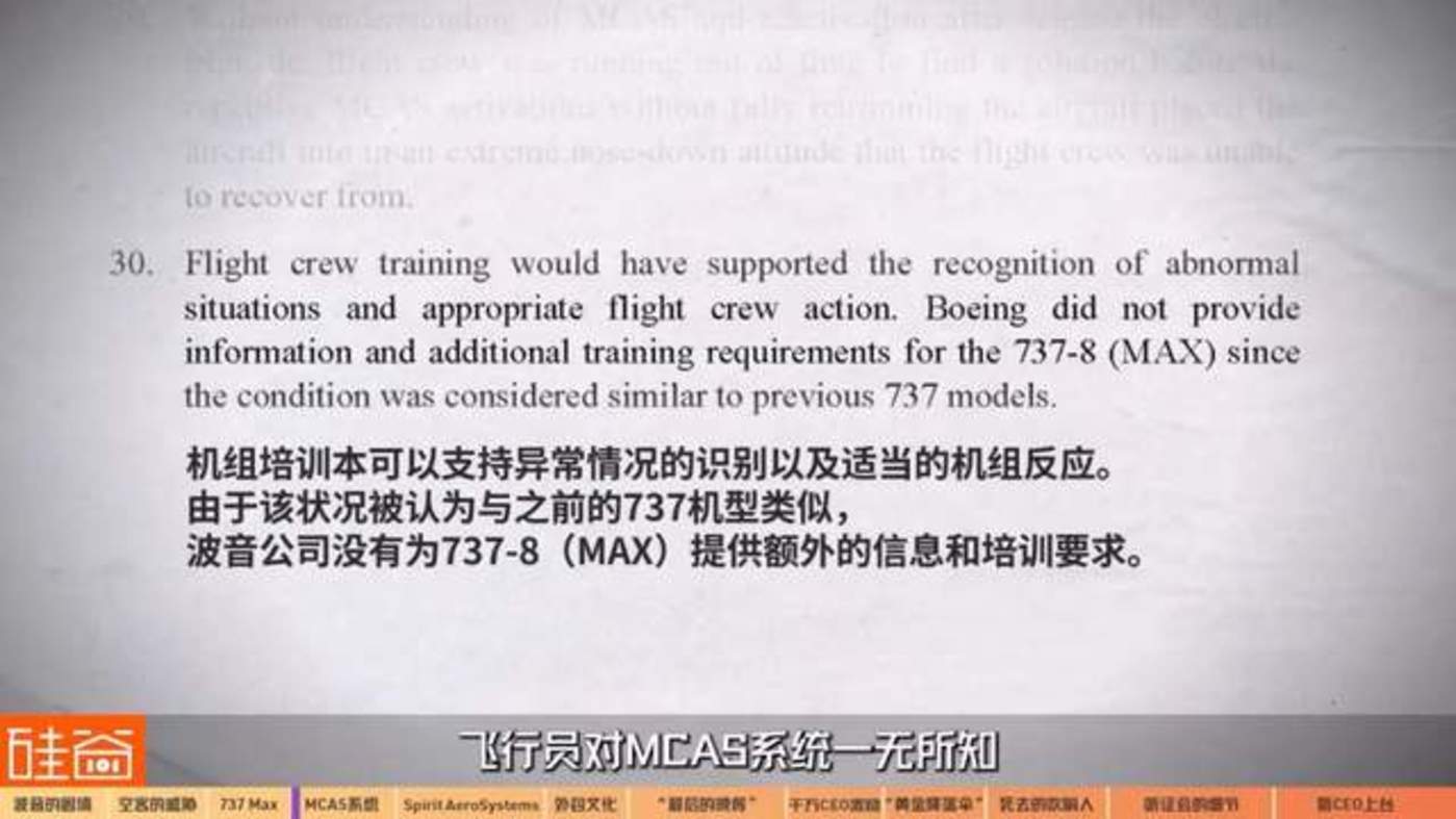 波音没有就 MCAS 给飞行员做过培训,也没有强调这个更新的功能和 737Max 的潜在风险。最终飞机因未能及时改平而坠毁。