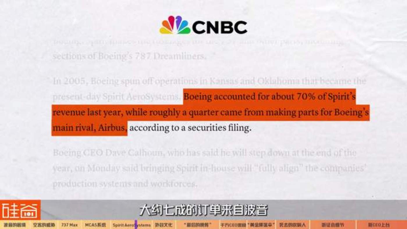 Spirit AeroSystems 极度依赖波音的订单,大约七成的订单来自波音,25% 来自空客。