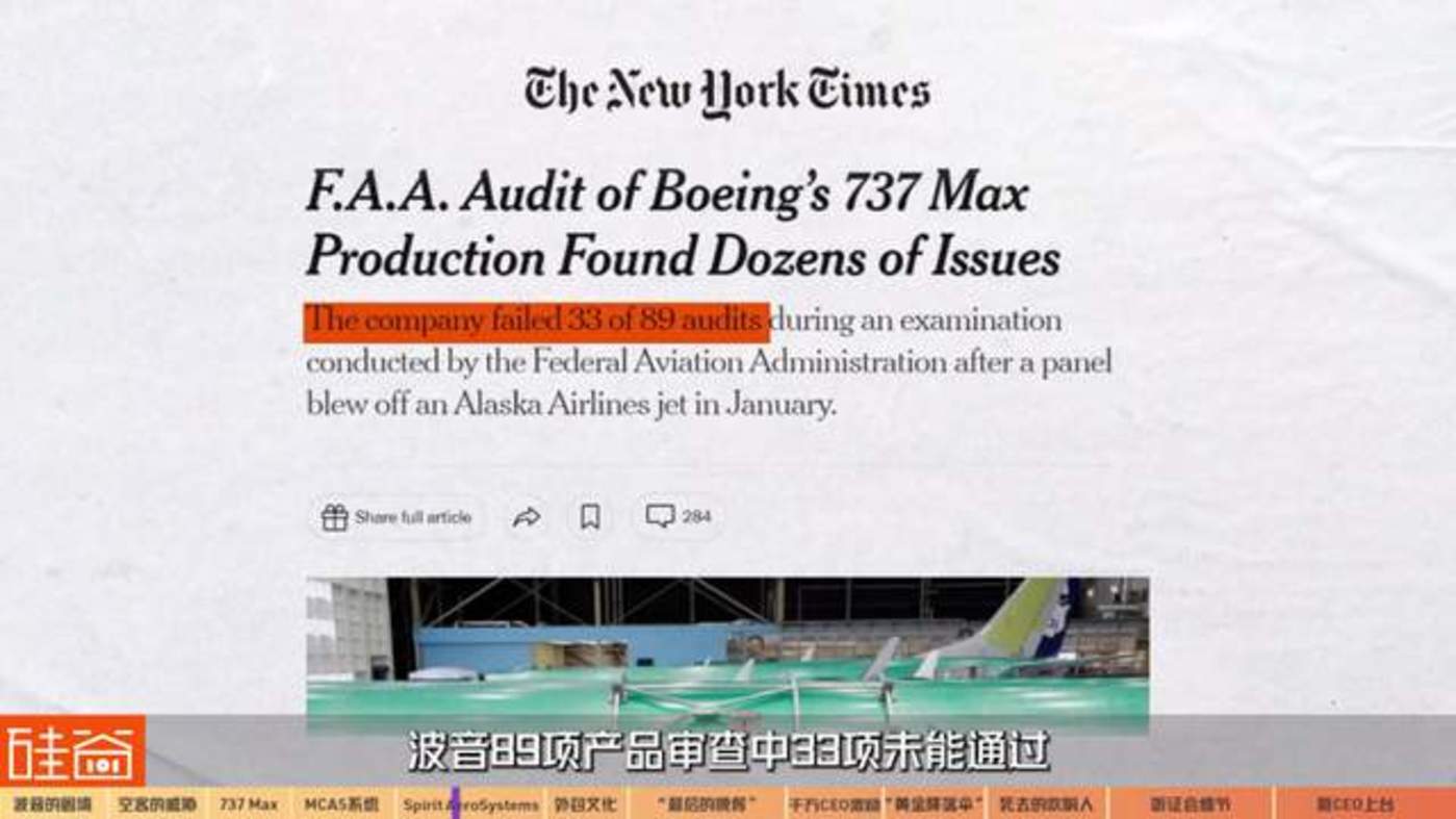 更惊悚的是,2024 年 3 月,美国 FAA 对波音公司进行的调查结果显示,波音 89 项产品审查中 33 项未能通过,总共出现 97 个涉嫌违规问题。
