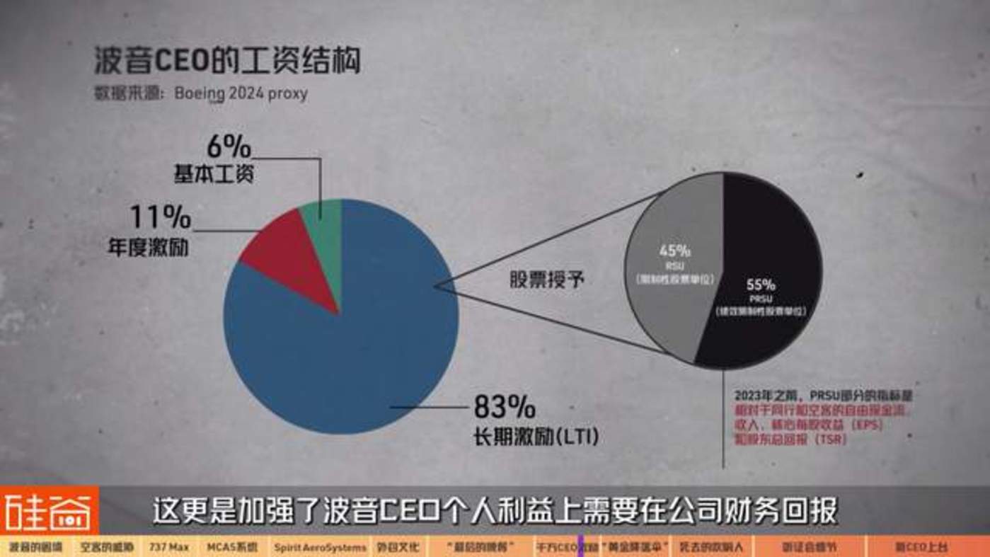 首先,董事会终于意识到,波音 CEO 的最大问题是 LTI,也就是长期激励的部分太高了。当你大部分的收入是来自股价,那你的注意力就只会盯着华尔街的曲线,而对于波音这样的飞机制造公司来说,CEO 的目光,不应该看着天空中吗?