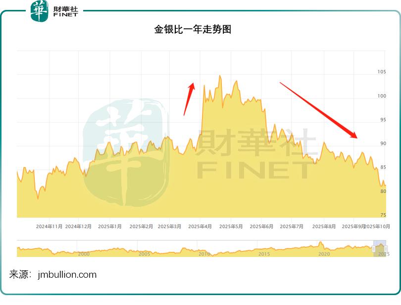 但随着银价攀升,金银比已持续下降,当前已接近 80 的临界点。