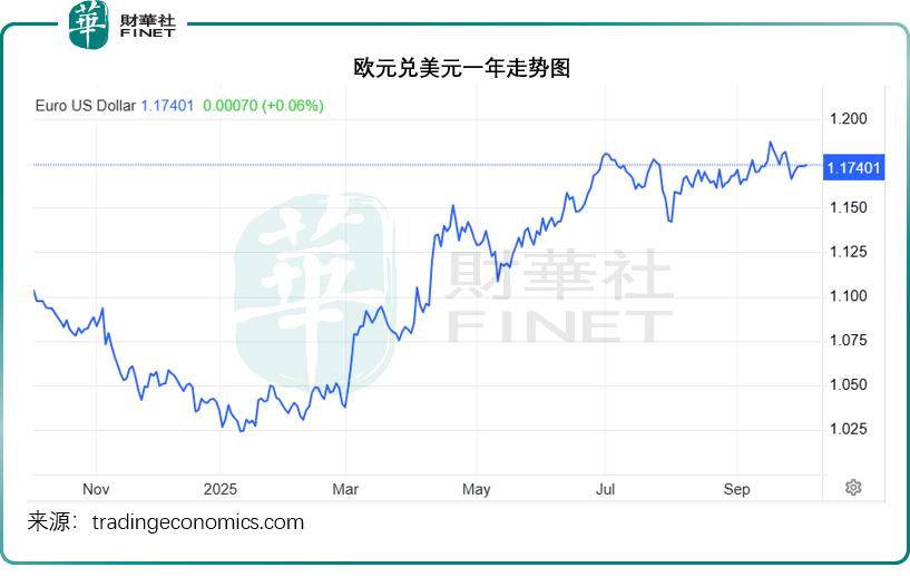 见下图,欧元兑美元汇价从年初的 1.0385 上升至当前的 1.17401,累计涨幅达 13.05%。
