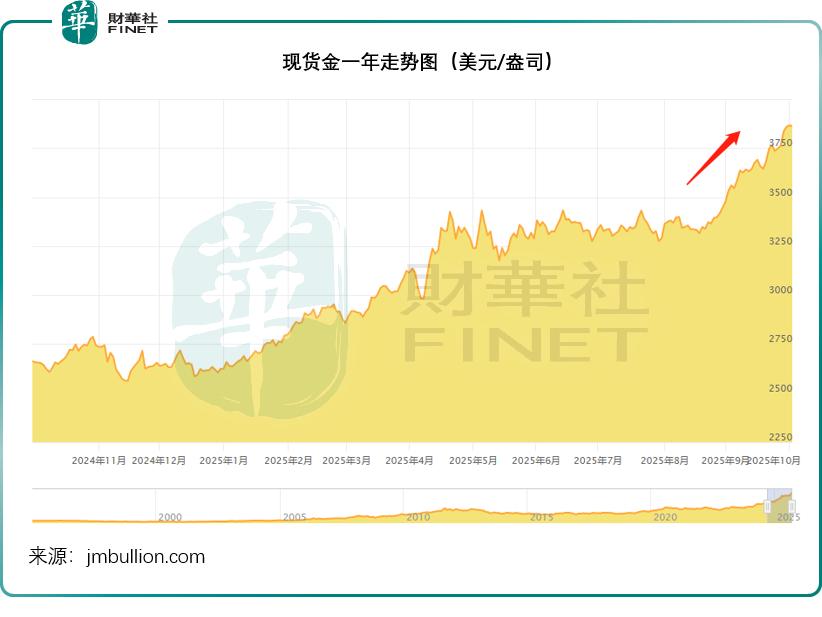 相较而言,今年同样走势凌厉的金价,按现价 3,878.11 美元计,现货金今年以来累计涨幅为 47.77%,其中第 3 季的累计涨幅为 17.41%,见下图。