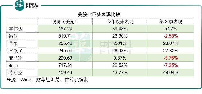 另一方面,苹果 (AAPL.US) 和谷歌-C(GOOG.US) 于第 3 季开始追落后,前者或因为 iPhone 新品表现预期向好,后者则因为其 AI 云表现超预期。