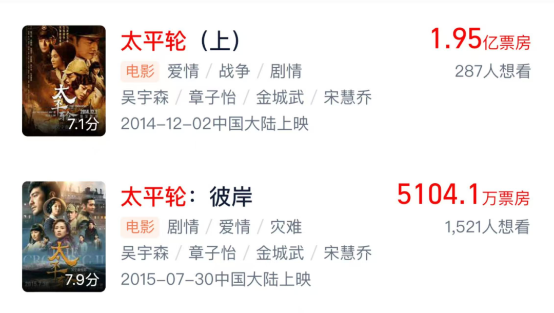 先是 2011 年陈可辛执导的 《武侠》 票房不达预期,2014 年,由吴宇森主导,金城武、章子怡、出演的 《太平轮》(上) 上映,而这部投资近 3 亿的作品,票房却不足 2 亿。但这些案例不会打击入局者的信心,各行各业看到电影市场点石成金的魔力。电影行业的入局者逐步增加,他们在电影身上下的赌注也越来越大。