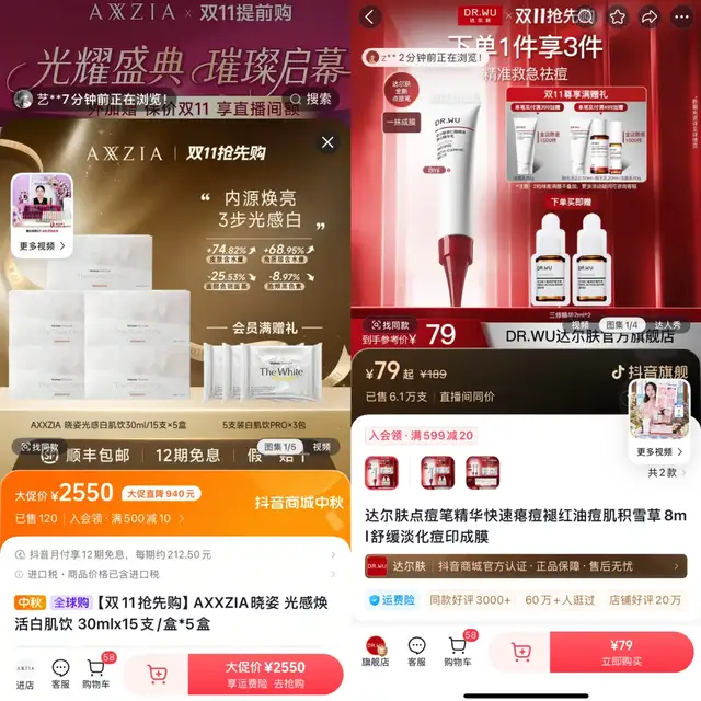 在巨量引擎给商家的双 11 攻略中,明确提出了双 11 要与中秋国庆“ 无缝衔接”。今年这两个节日重叠在一起,从 9 月上旬起就形成了一个包含送礼、出游与休闲娱乐需求的“ 超长消费季”。所以早在九月,你打开抖音便能看到,大量品牌商品页已打上“ 双 11 提前购” 的标签,直播间里“ 保价双 11” 的承诺也此起彼伏。