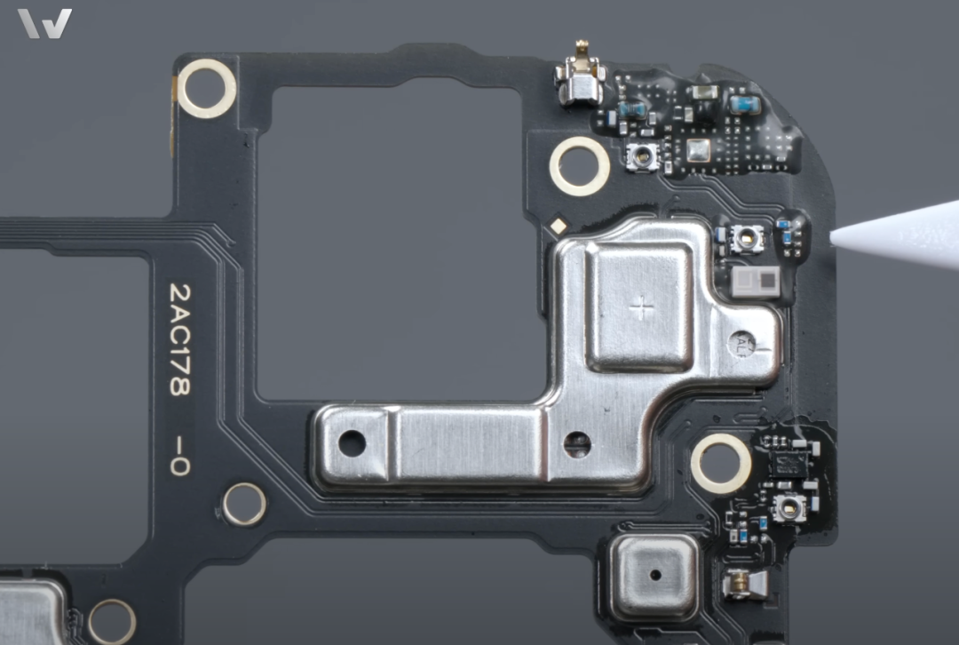 给你看一下封胶的实图,截取自微机分 WekiHome 对 OPPO Find X8 的拆机视频,链接附后。