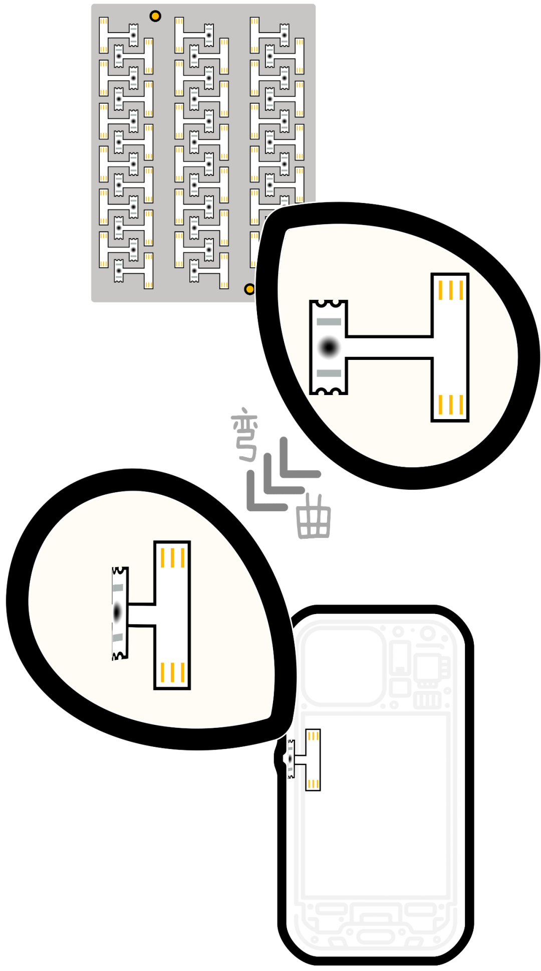 他包里塞着几张 A4 纸一样的“ 软电路板”,上面密密麻麻地排列着上百个相同的小器件。