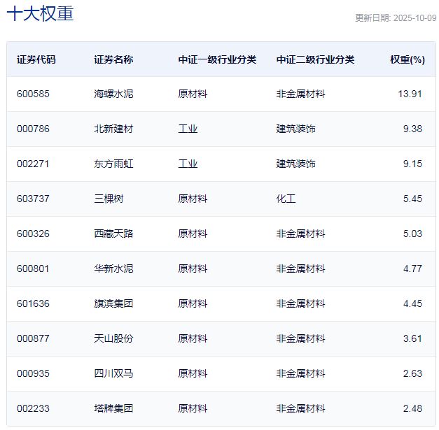 中证全指建筑材料指数从中证全指指数中选取业务涉及建筑材料领域的上市公司证券作为指数样本,以反映该主题上市公司证券的整体表现。