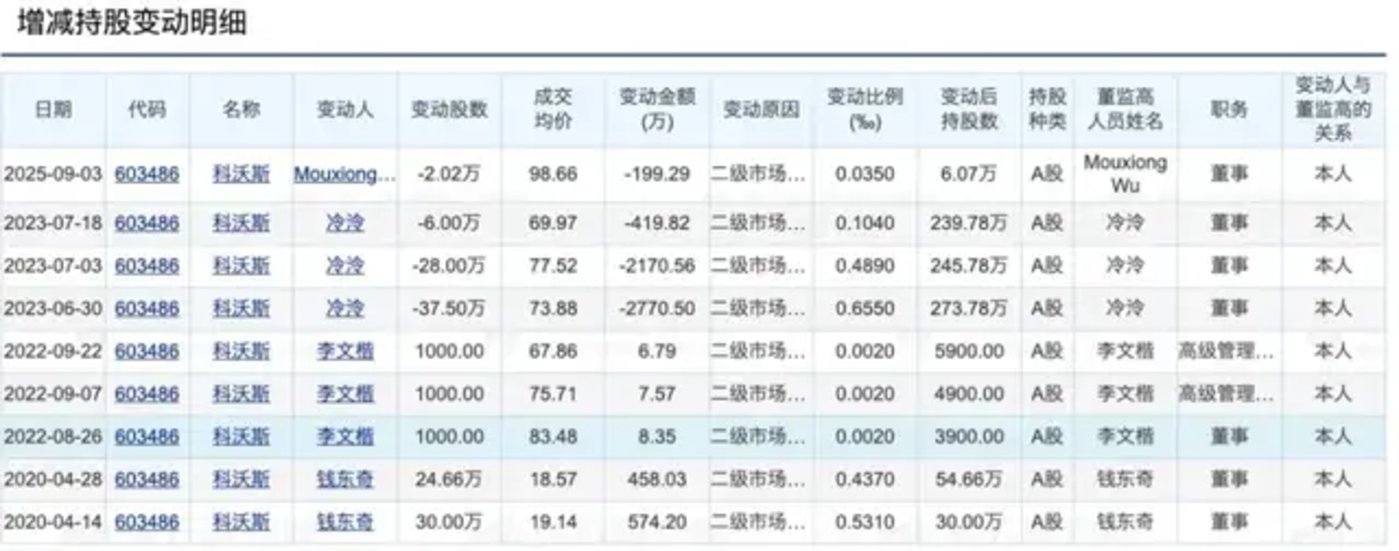 (科沃斯高管减持情况,数据来源东方财富)