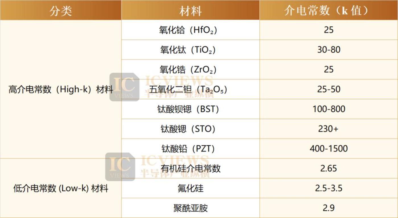 高 k 介质材料具有比传统的 SiO₂更高的介电常数 (k 值)。