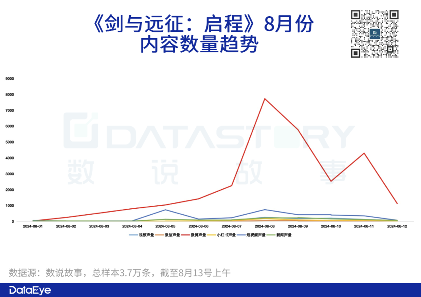 社媒传播方面,我们邀请到了数说故事提供相关数据 (数说故事官方简介:中国领先的一站式大数据及 AI 智能应用提供商,构建了从数据收集、处理、分析、建模到商业应用的全价值链解决方案,旗下拥有数说雷达、数说睿见、数说聚合等 50+应用),以下来自数说故事旗下互联网大数据获取与分析平台——数说聚合。时间:2024 年 8 月 1 日至 2024 年 8 月 13 日。