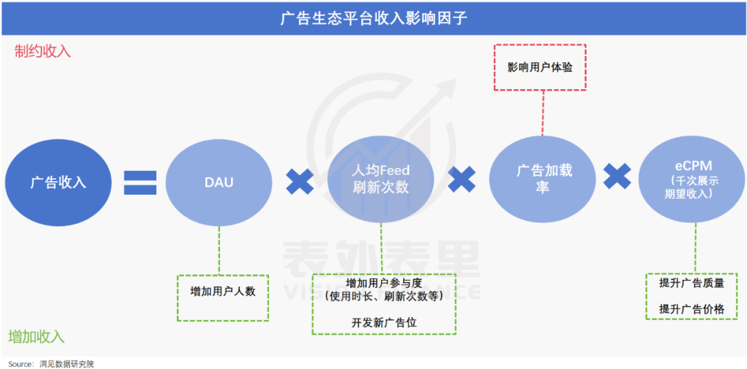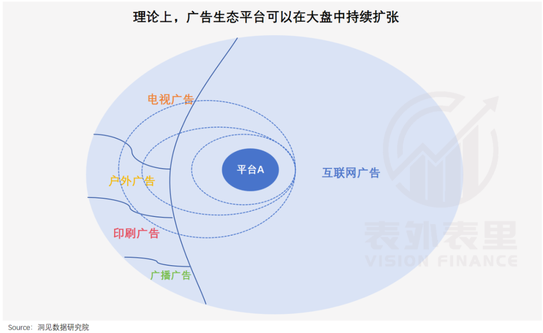 而广告生态平台则不同,理论上可“ 上不封顶”:只要保证内容吸引力、算法精准度,就可以通过提价、加量不断扩张,甚至把电视、户外广告的蛋糕都切走。
