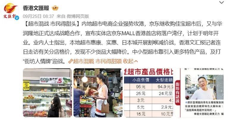 实际上,京东 MALL 并不是京东在香港的首次出牌。早在去年下半年,京东就开始高调投入香港的零售市场,拿出了超过 15 亿元用于香港市场的补贴;今年 8 月份,京东斥资 40 亿港元收购了平民连锁超市“ 佳宝” 之后,更是在香港开启了多天的全场八折优惠。