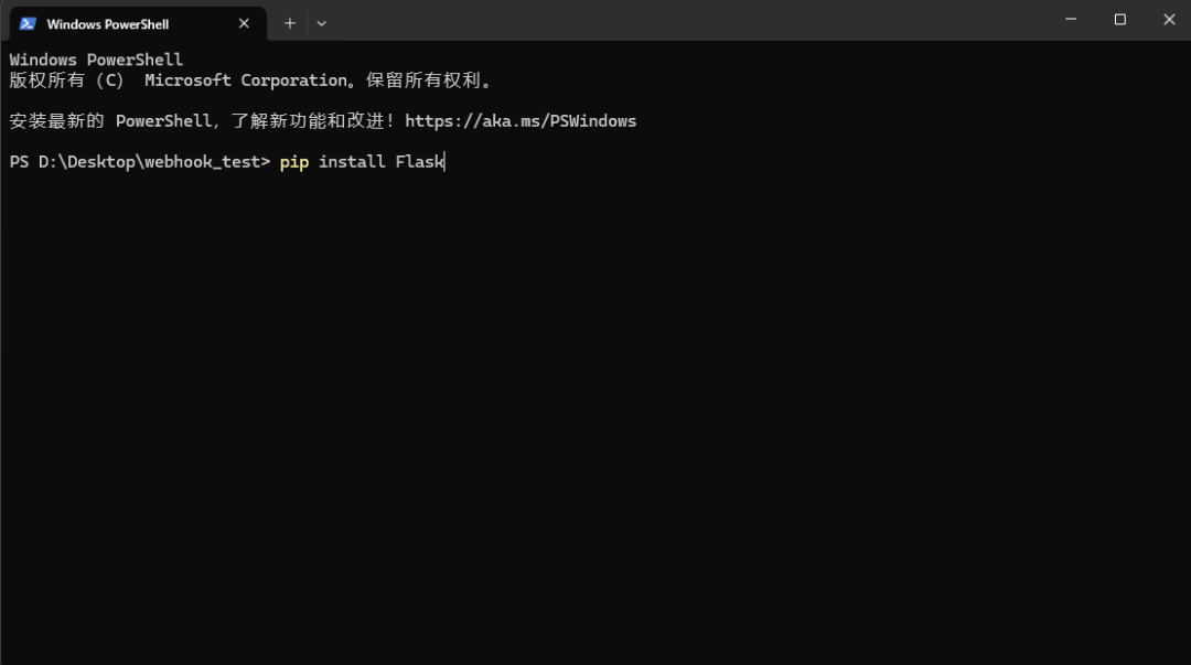 - 打开命令行 (Windows 叫 PowerShell 或 CMD,macOS 叫终端),输入 pip install Flask 并回车,安装我们需要的“ 接收器” 框架。