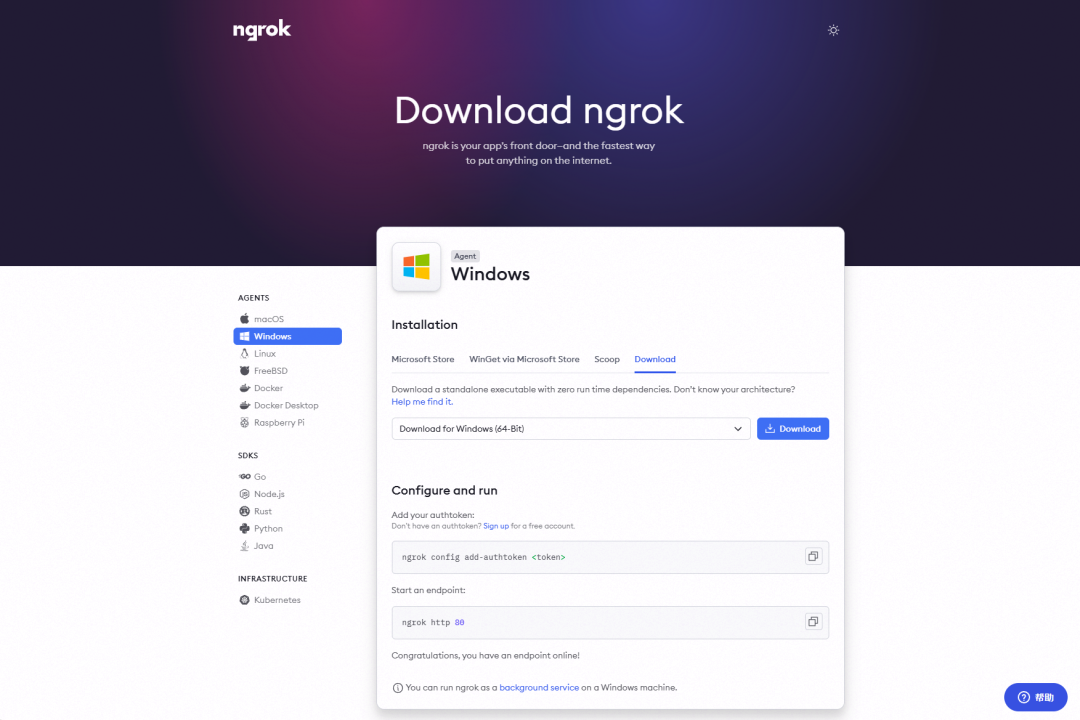 - 官方地址: https://ngrok.com/download