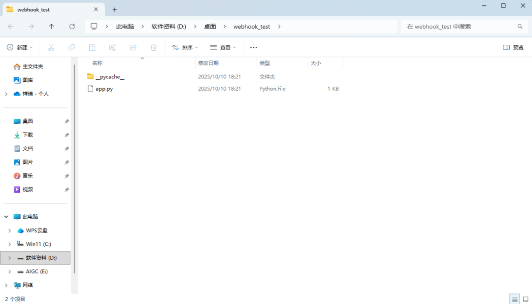 - 在 webhook_test 文件夹里,创建一个名为 app.py 的文件。