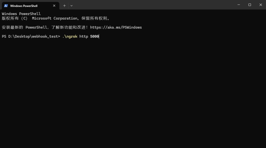 - 进入 webhook_test 文件夹 (因为我们把 ngrok.exe 复制进来了)。