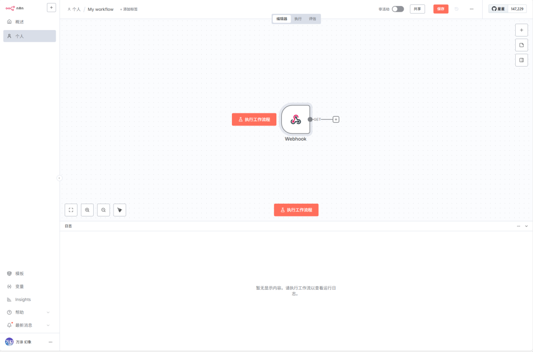 - 现在,你可以从 Webhook 节点后面拖出一个新的节点,比如 Feishu (飞书),在消息内容里引用上一步收到的数据 (比如 {{$('Webhook').item.json.body}} ),实现自动化通知。
