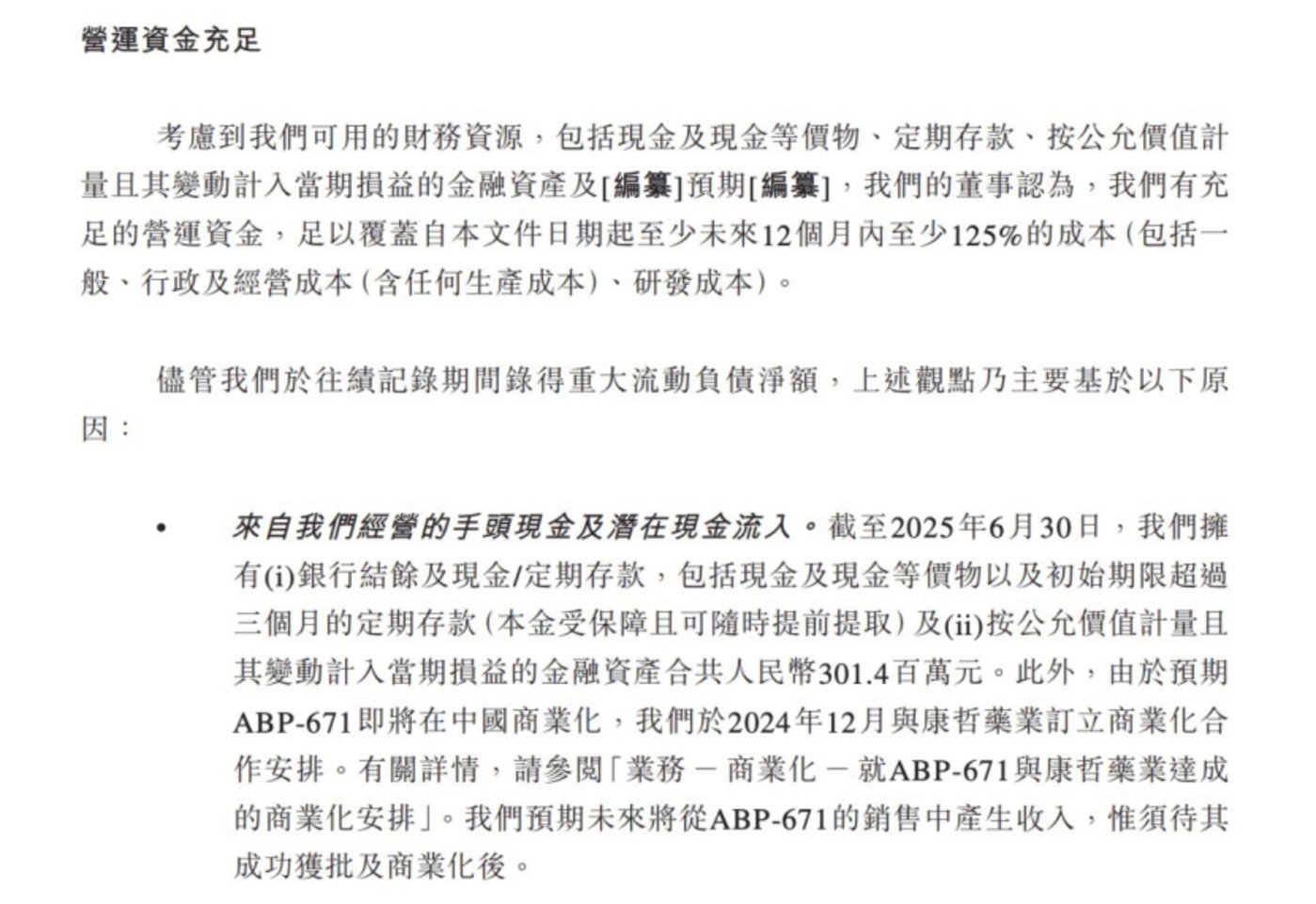 截至 2025 年 6 月 30 日,公司持有银行结余及现金、定期存款及初始期限超过三个月的定期存款,共计约 3.01 亿元金融资产。