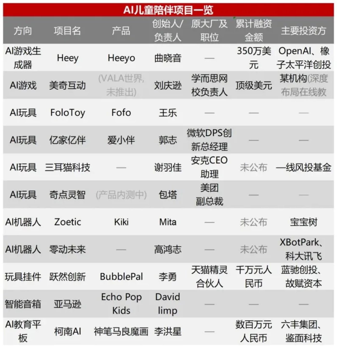 先有 OpenAI 投资儿童游戏生成器公司 Heeyo,后有原天猫精灵合伙人创立的 AI 初创公司跃然创新 Haivivi 推出 AI 玩具,再有 360 发布国内首款儿童 AI 手表,而在不久前,AI 教育创业公司柯南 AI 完成数百万元天使轮融资……