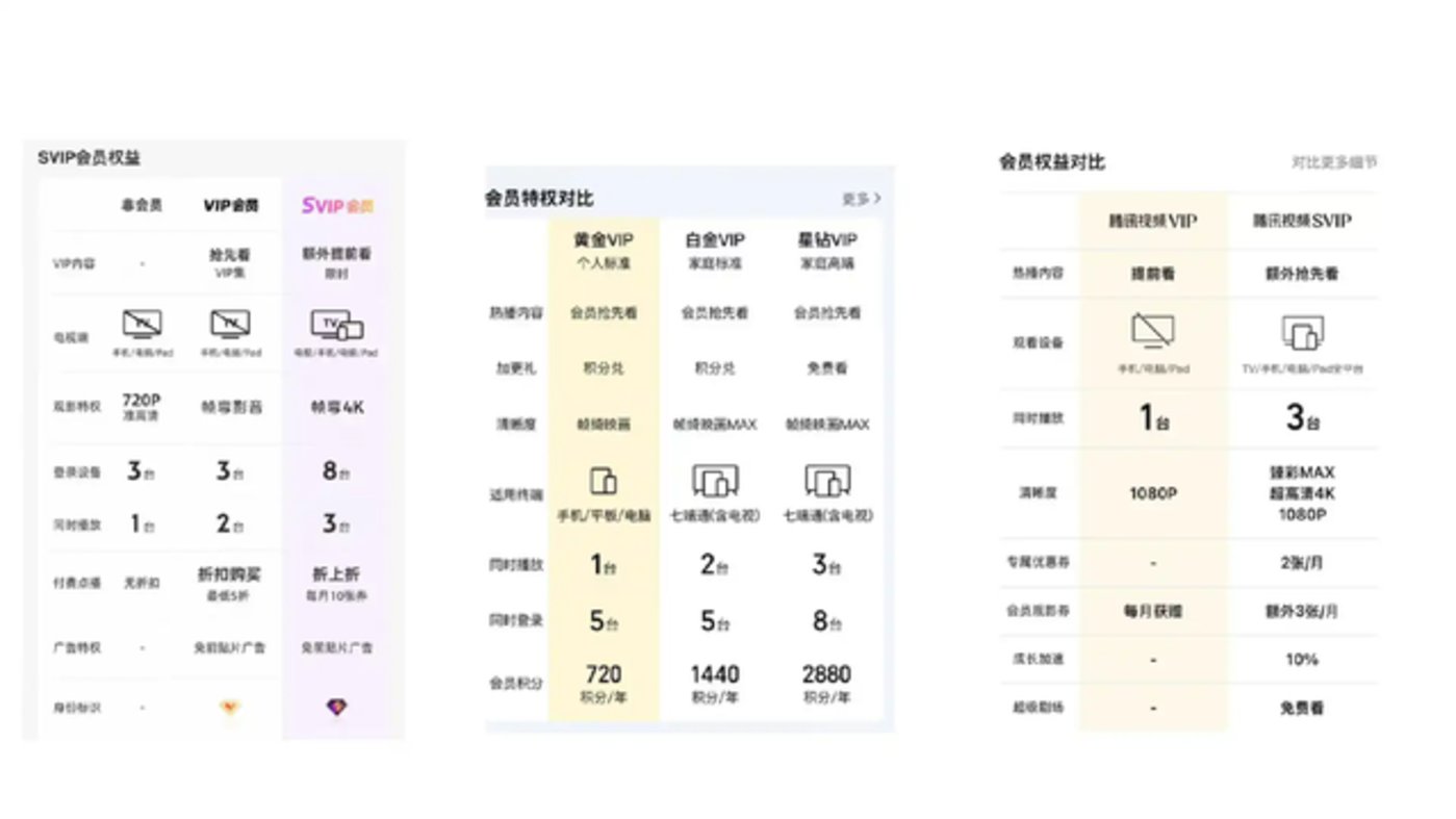 差不多同时期,腾讯视频、优酷等也悄然调整会员体系,将 4K 高清、杜比视听、多设备同时登录等权益,从原有 VIP 中剥离,划归至价格更高的超级影视 SVIP 或家庭套餐。