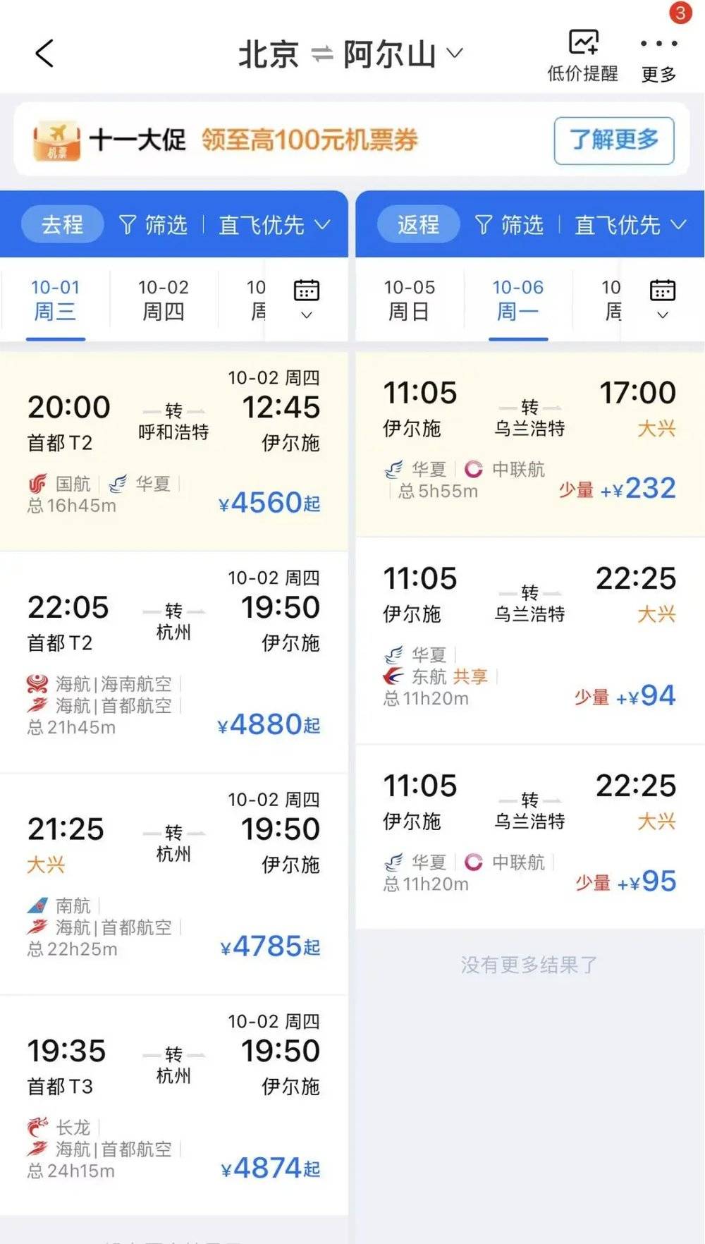 交通费用,是东北追秋最贵的花销。深圳往返海拉尔的机票,需要一万块: